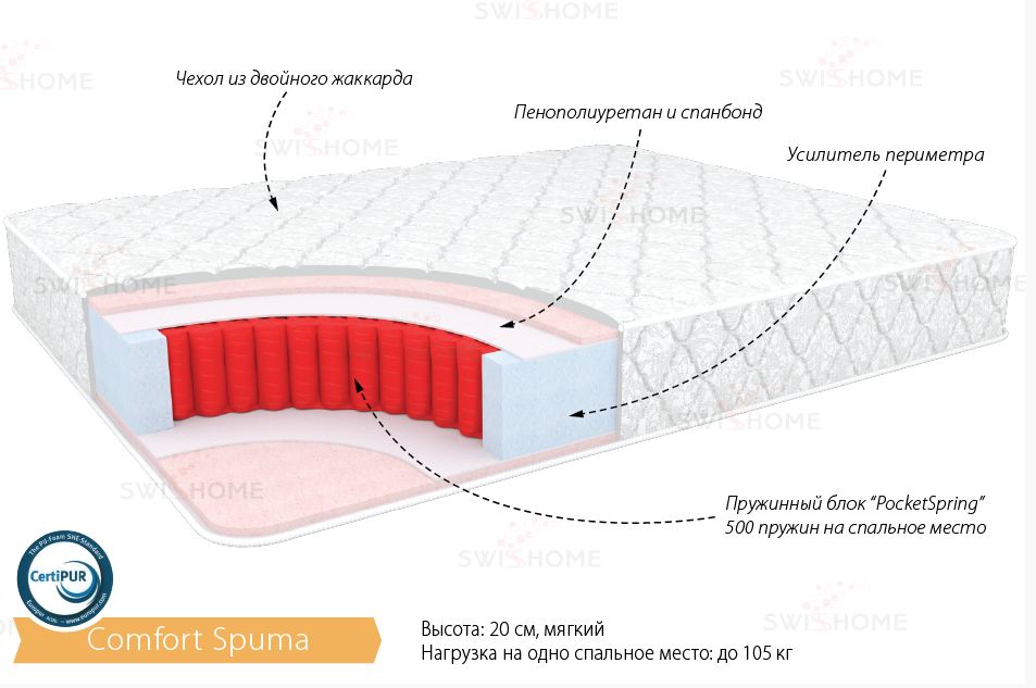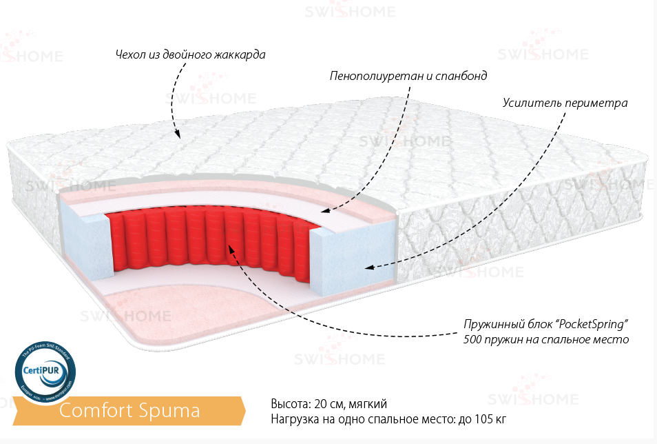 Матрас "Комфорт Спума" гарантирует сон, словно на мягкой перине.