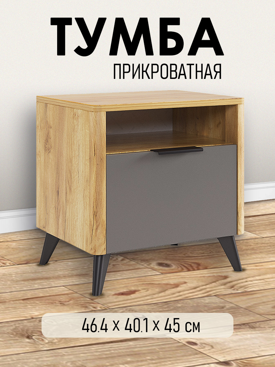 Прикроватная тумба Адам — дуб крафт золотой/графит серый
