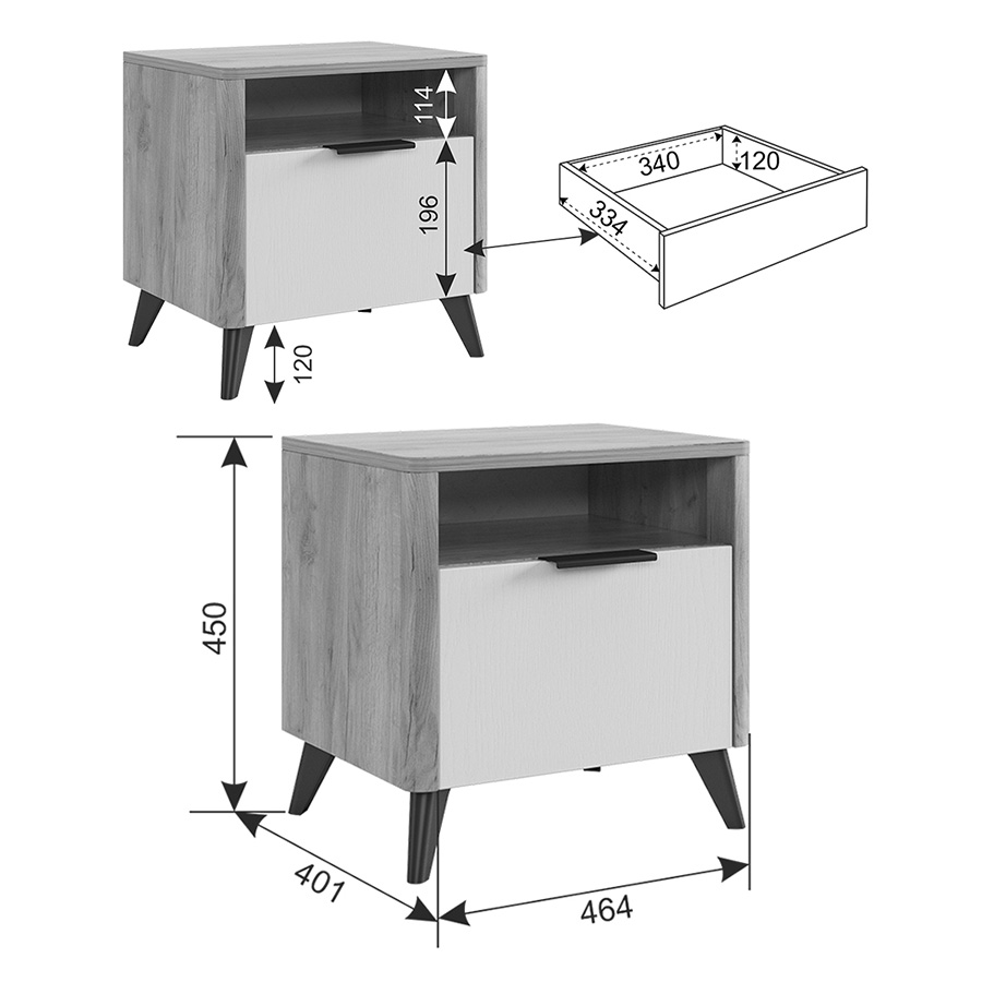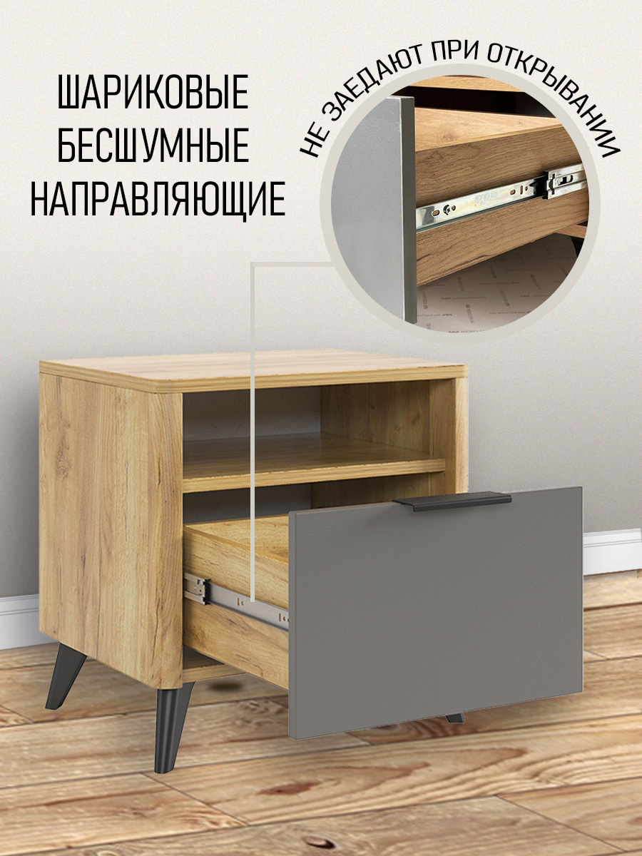 Фасад ящика и открытая ниша выполнены в цвете «графит серый» — глубокий тёмный оттенок, который красиво контрастирует с корпусом.