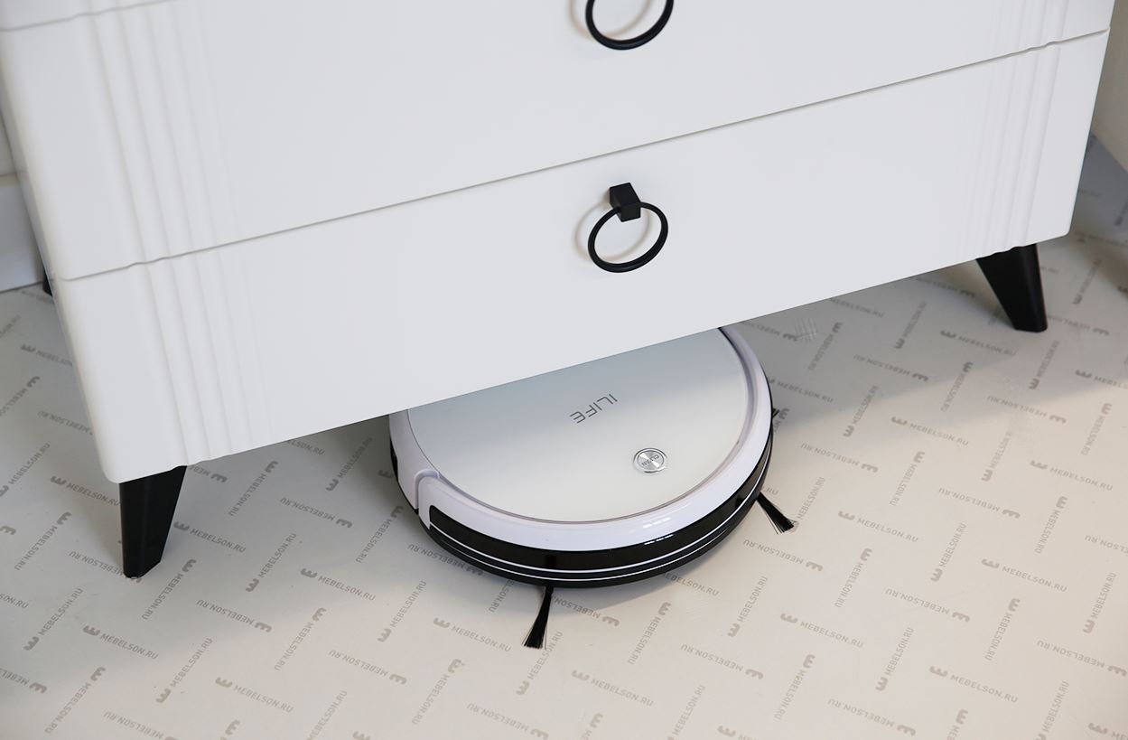 Черные пластиковые опоры высотой 120 мм придают комоду легкость и облегчают уборку под ним.