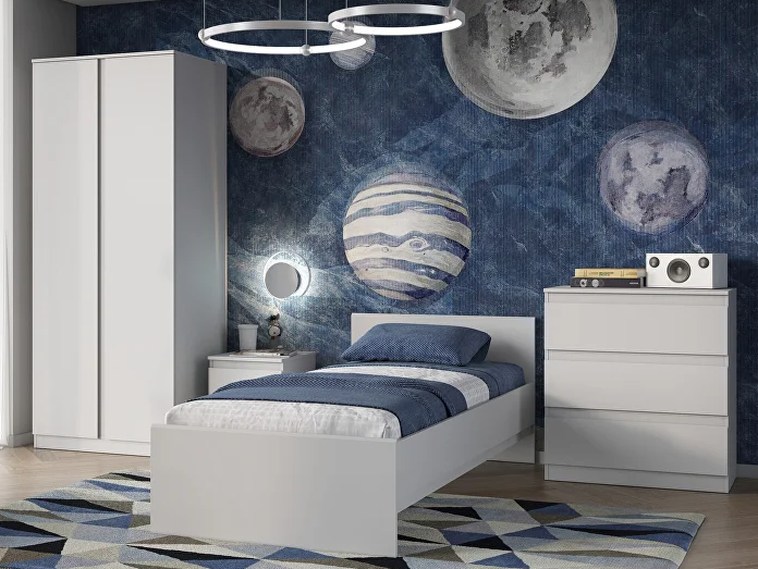 Лаконичный современный комод в белом оттенке. Эффектный цвет фасада и минималистичная элегантность сделают эту модель уместной и в классической, и в современной обстановке. Конструкция включает в себя четыре вместительных ящика на роликовых направляющих. Особенностью комода являются скошенные ручки на ящиках.